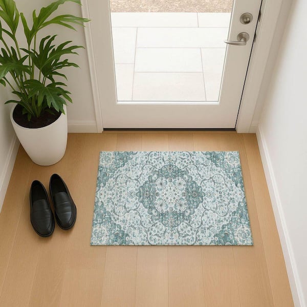 Mayfield Premium Machine Washable Abstract AMF1677 Teal 2 ft. x 3 ft. Area Rug
