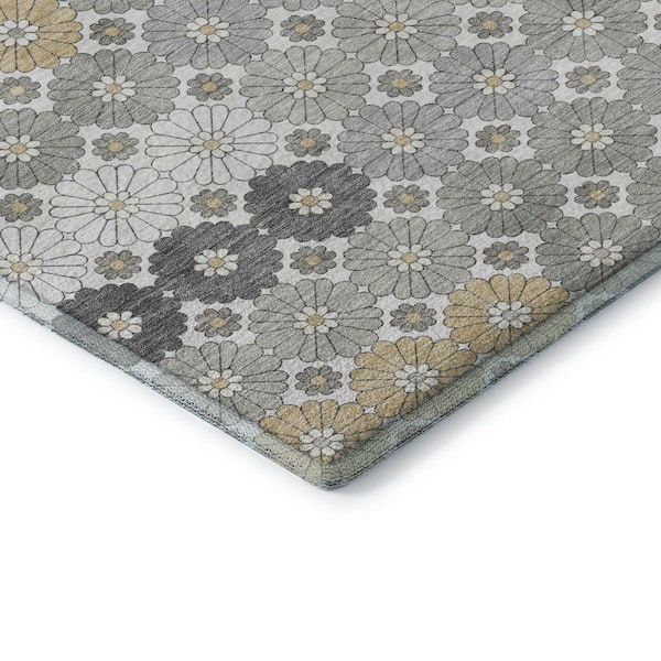 Mayfield Premium Machine Washable Abstract AMF1678 Gray 2 ft. 3 in. x 7 ft. 6 in. Runner Rug