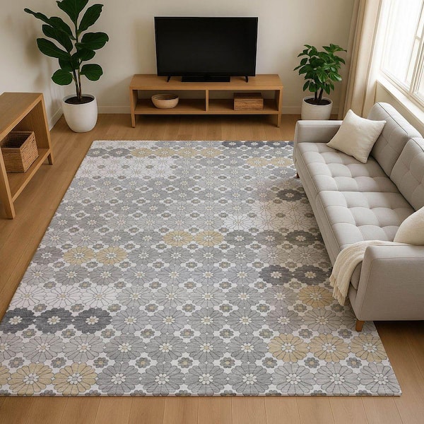 Mayfield Premium Machine Washable Abstract AMF1678 Gray 3 ft. x 4 ft. Area Rug