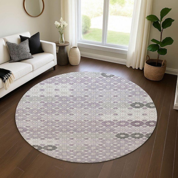 Mayfield Premium Machine Washable Abstract AMF1678 Lavender 8 ft. x 8 ft. Round Rug