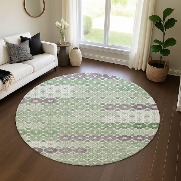 Mayfield Premium Machine Washable Abstract AMF1678 Sage 8 ft. x 8 ft. Round Rug
