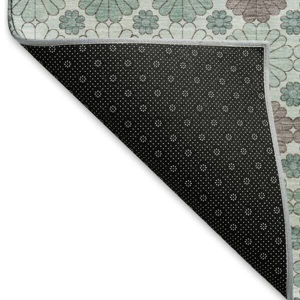 Mayfield Premium Machine Washable Abstract AMF1678 Teal 8 ft. x 8 ft. Round Rug