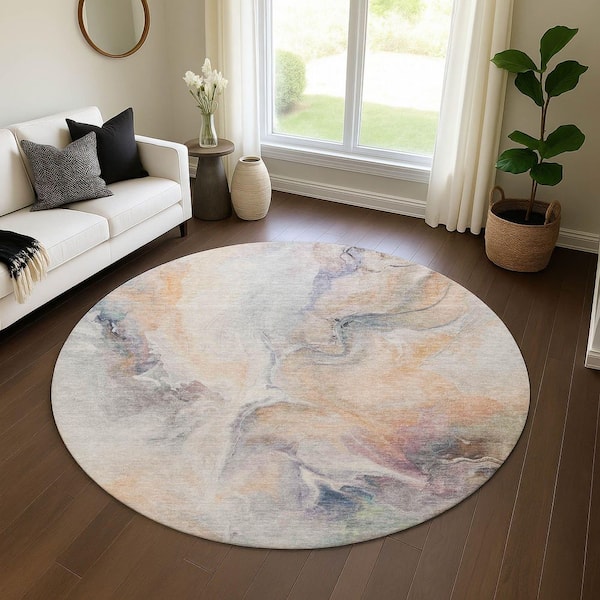 Mayfield Premium Machine Washable Abstract AMF1679 Linen 8 ft. x 8 ft. Round Rug