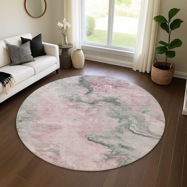 Mayfield Premium Machine Washable Abstract AMF1680 Blush 8 ft. x 8 ft. Round Rug