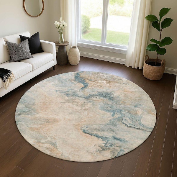 Mayfield Premium Machine Washable Abstract AMF1680 Teal 8 ft. x 8 ft. Round Rug