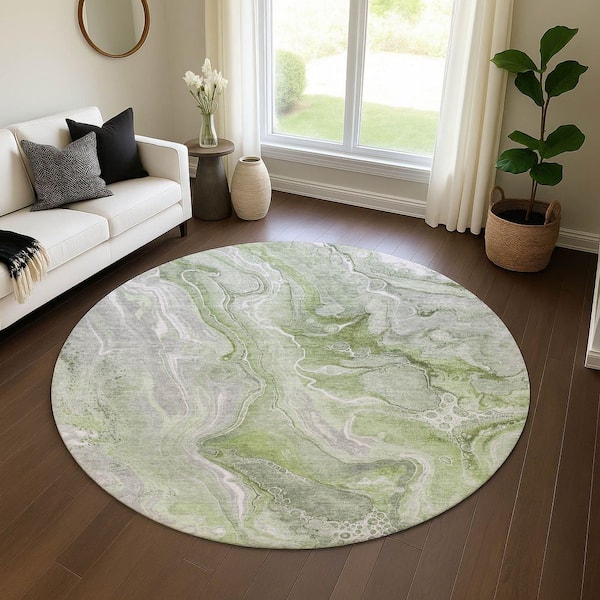 Mayfield Premium Machine Washable Abstract AMF1681 Aloe 8 ft. x 8 ft. Round Rug
