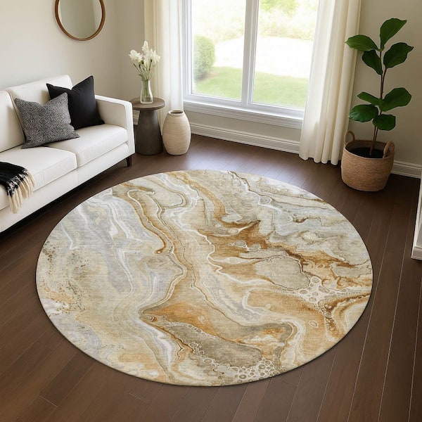 Mayfield Premium Machine Washable Abstract AMF1681 Pewter 8 ft. x 8 ft. Round Rug