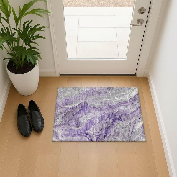 Mayfield Premium Machine Washable Abstract AMF1681 Purple 2 ft. x 3 ft. Area Rug
