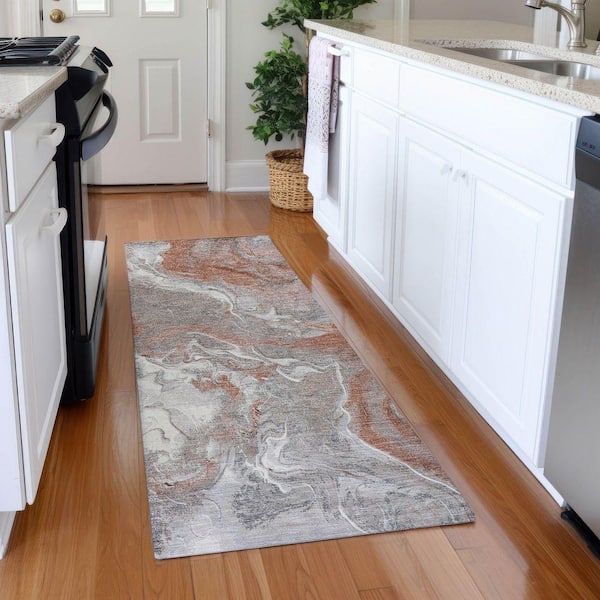Mayfield Premium Machine Washable Abstract AMF1682 Salmon 2 ft. 3 in. x 7 ft. 6 in. Runner Rug