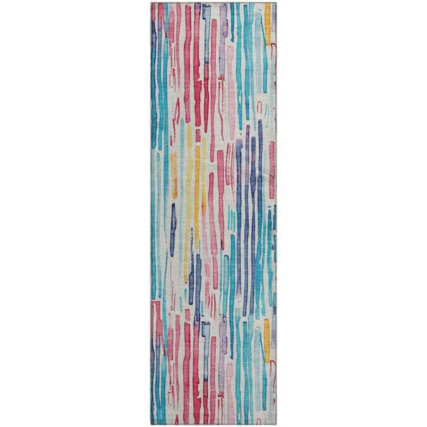 Mayfield Premium Machine Washable Abstract AMF1684 White 2 ft. 3 in. x 7 ft. 6 in. Runner Rug