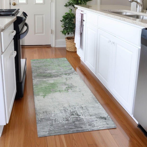 Mayfield Premium Machine Washable Abstract AMF1685 Aloe 2 ft. 3 in. x 7 ft. 6 in. Runner Rug