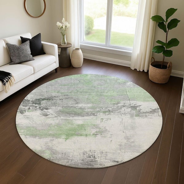 Mayfield Premium Machine Washable Abstract AMF1685 Aloe 8 ft. x 8 ft. Round Rug