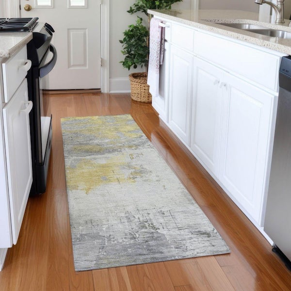 Mayfield Premium Machine Washable Abstract AMF1685 Gold 2 ft. 3 in. x 7 ft. 6 in. Runner Rug