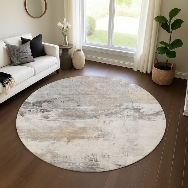 Mayfield Premium Machine Washable Abstract AMF1685 Ivory 8 ft. x 8 ft. Round Rug