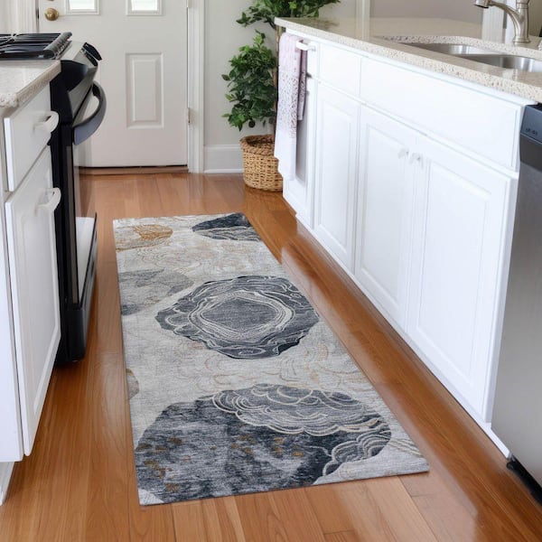 Mayfield Premium Machine Washable Abstract AMF1686 Gray 2 ft. 3 in. x 7 ft. 6 in. Runner Rug