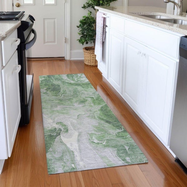 Mayfield Premium Machine Washable Abstract AMF1687 Green 2 ft. 3 in. x 7 ft. 6 in. Runner Rug