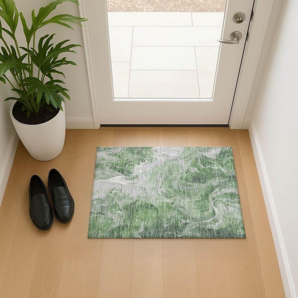 Mayfield Premium Machine Washable Abstract AMF1687 Green 2 ft. x 3 ft. Area Rug