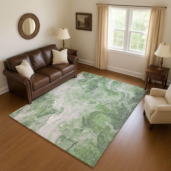 Mayfield Premium Machine Washable Abstract AMF1687 Green 3 ft. x 4 ft. Area Rug