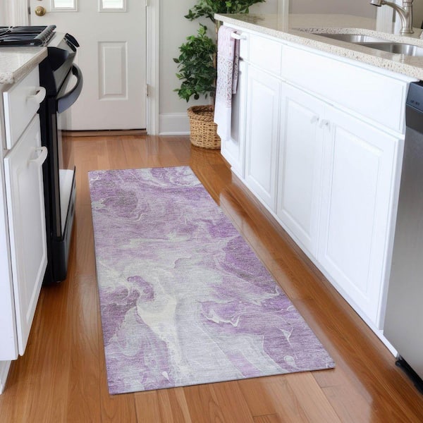 Mayfield Premium Machine Washable Abstract AMF1687 Lavender 2 ft. 3 in. x 7 ft. 6 in. Runner Rug