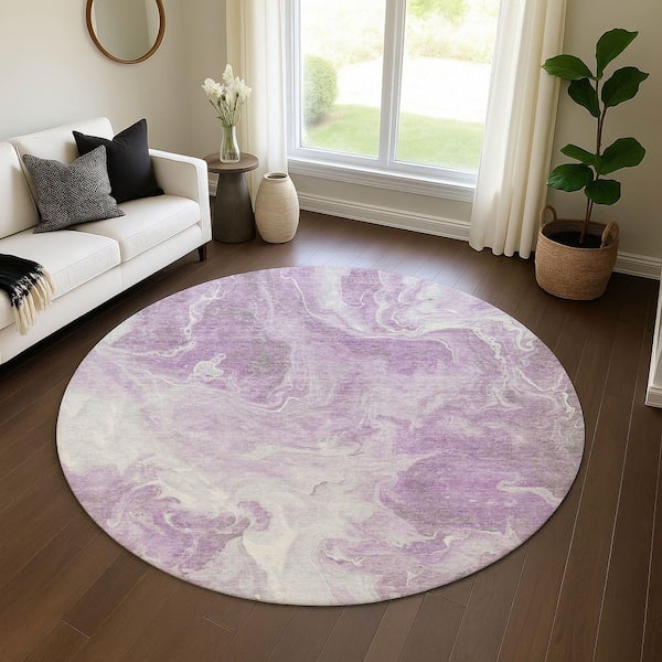 Mayfield Premium Machine Washable Abstract AMF1687 Lavender 8 ft. x 8 ft. Round Rug