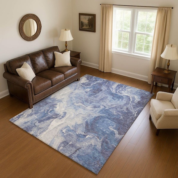 Mayfield Premium Machine Washable Abstract AMF1687 Navy 3 ft. x 5 ft. Area Rug