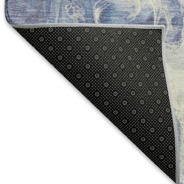 Mayfield Premium Machine Washable Abstract AMF1687 Navy 8 ft. x 8 ft. Round Rug