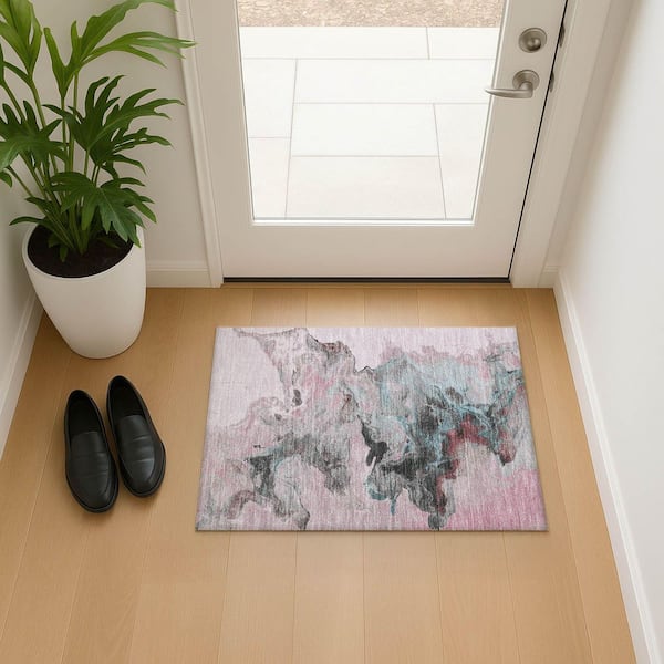 Mayfield Premium Machine Washable Abstract AMF1688 Pink 2 ft. x 3 ft. Area Rug