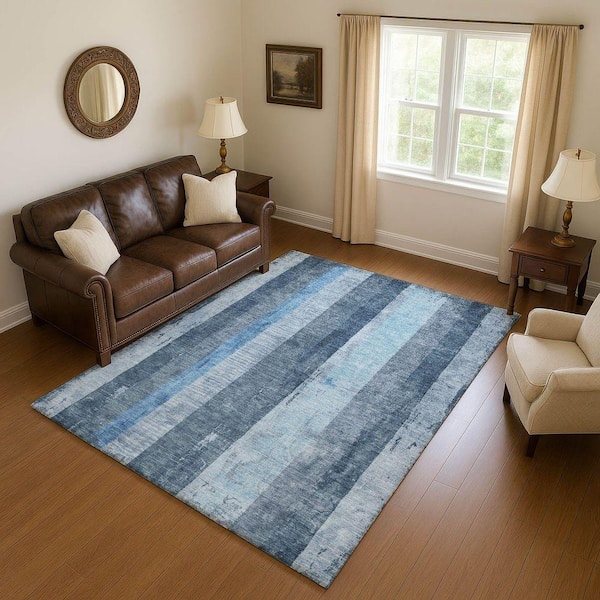 Mayfield Premium Machine Washable Abstract AMF1689 Blue 3 ft. x 5 ft. Area Rug
