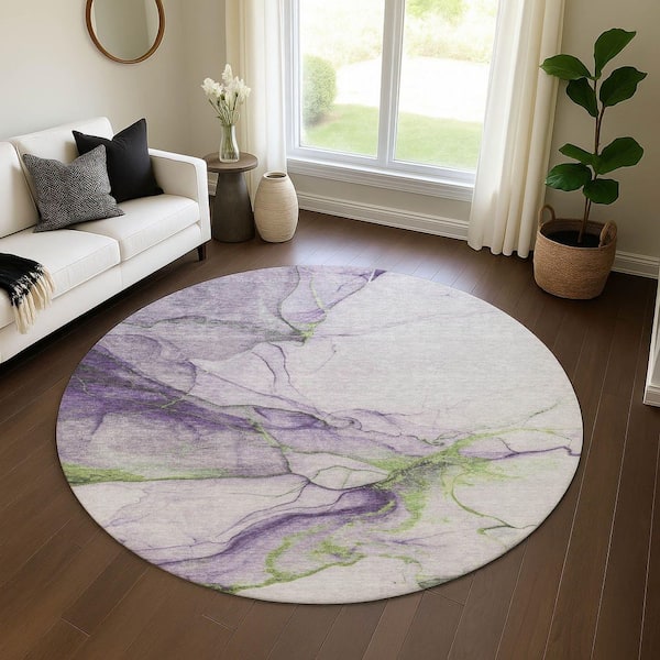Mayfield Premium Machine Washable Abstract AMF1690 Purple 8 ft. x 8 ft. Round Rug