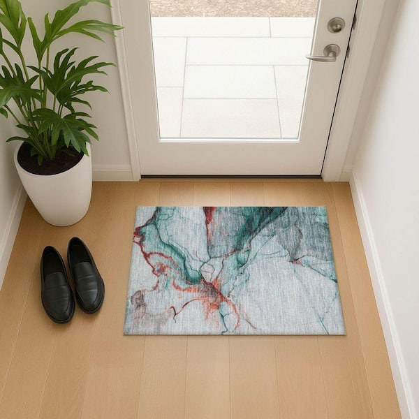 Mayfield Premium Machine Washable Abstract AMF1690 Teal 2 ft. x 3 ft. Area Rug