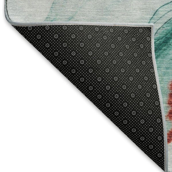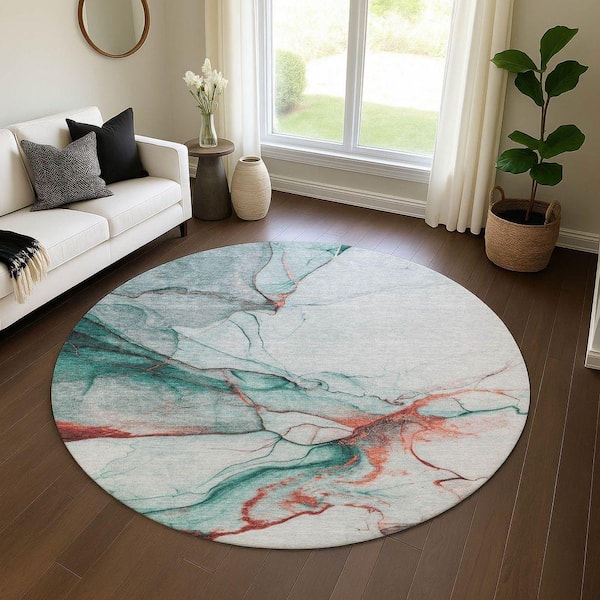 Mayfield Premium Machine Washable Abstract AMF1690 Teal 8 ft. x 8 ft. Round Rug