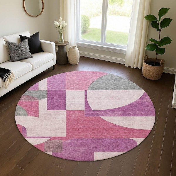 Mayfield Premium Machine Washable Abstract AMF1692 Blush 8 ft. x 8 ft. Round Rug