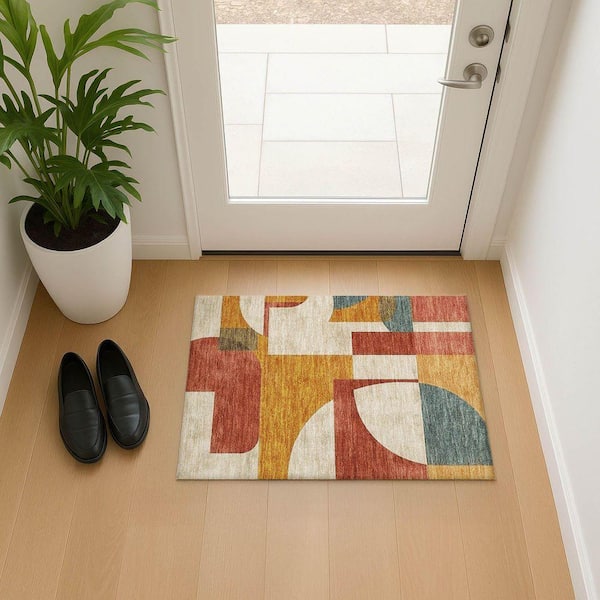 Mayfield Premium Machine Washable Abstract AMF1692 Coral 2 ft. x 3 ft. Area Rug