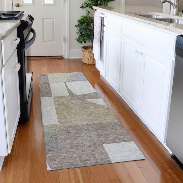Mayfield Premium Machine Washable Abstract AMF1692 Khaki 2 ft. 3 in. x 7 ft. 6 in. Runner Rug