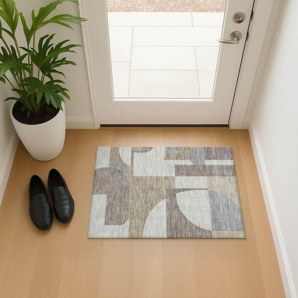 Mayfield Premium Machine Washable Abstract AMF1692 Khaki 2 ft. x 3 ft. Area Rug