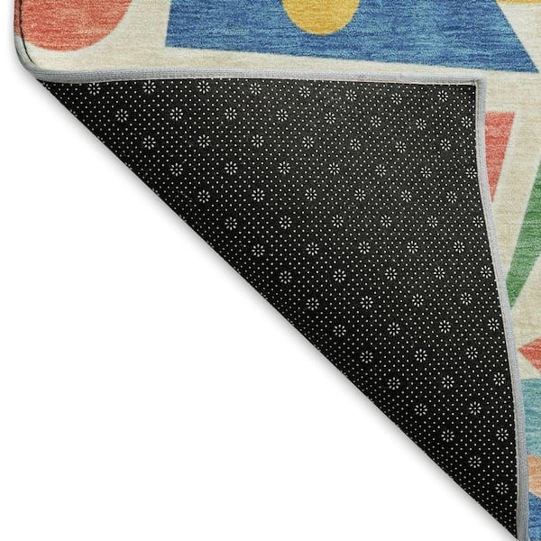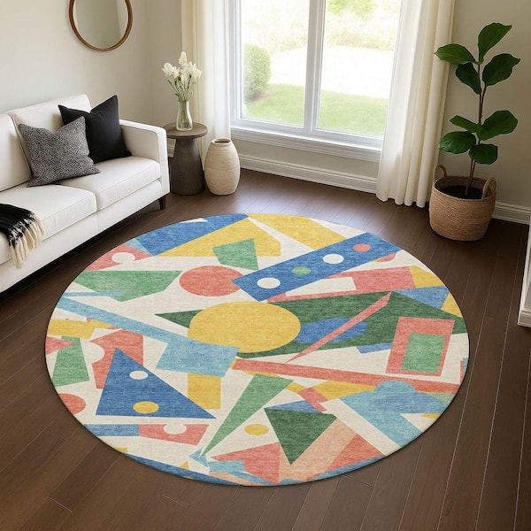 Mayfield Premium Machine Washable Abstract AMF1693 Blue 8 ft. x 8 ft. Round Rug
