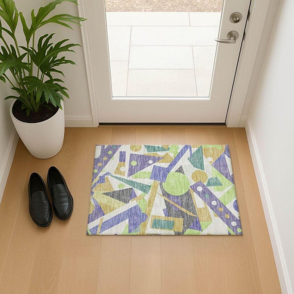 Mayfield Premium Machine Washable Abstract AMF1693 Lavender 2 ft. x 3 ft. Area Rug