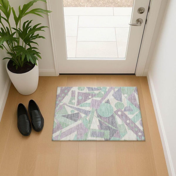 Mayfield Premium Machine Washable Abstract AMF1693 Lilac 2 ft. x 3 ft. Area Rug