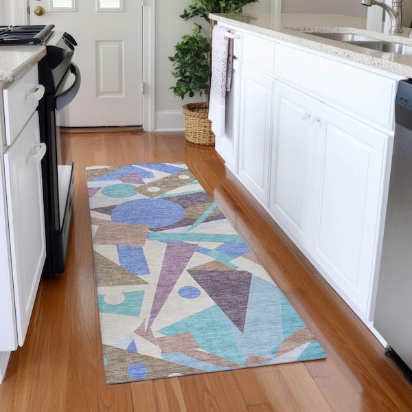 Mayfield Premium Machine Washable Abstract AMF1693 Mocha 2 ft. 3 in. x 7 ft. 6 in. Runner Rug