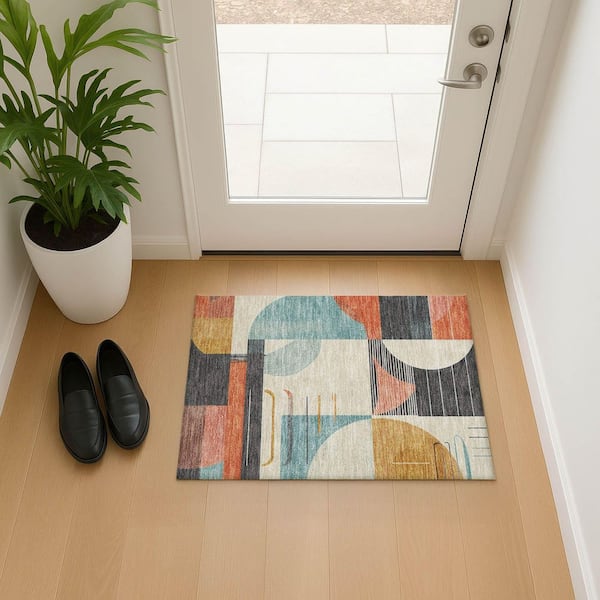 Mayfield Premium Machine Washable Abstract AMF1694 Gray 2 ft. x 3 ft. Area Rug
