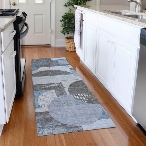 Mayfield Premium Machine Washable Abstract AMF1695 Blue 2 ft. 3 in. x 7 ft. 6 in. Runner Rug