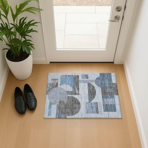 Mayfield Premium Machine Washable Abstract AMF1695 Blue 2 ft. x 3 ft. Area Rug