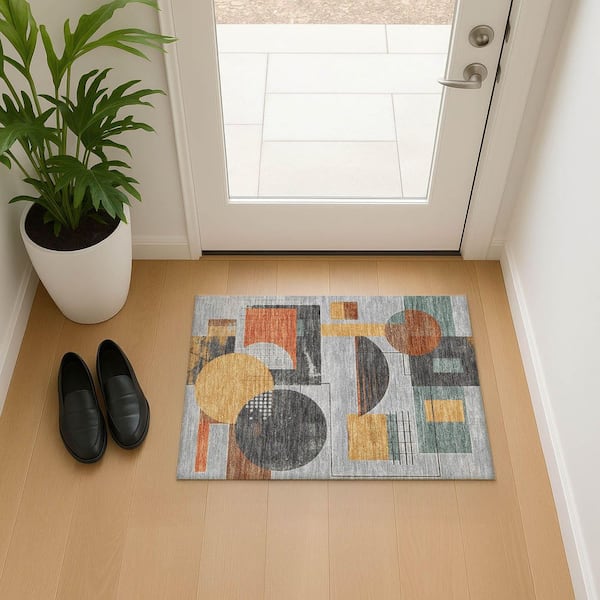 Mayfield Premium Machine Washable Abstract AMF1695 Gray 2 ft. x 3 ft. Area Rug