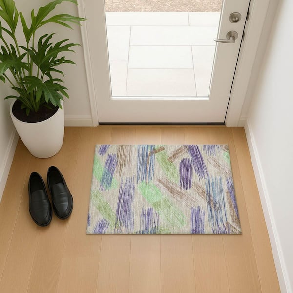 Mayfield Premium Machine Washable Abstract AMF1696 Beige 2 ft. x 3 ft. Area Rug