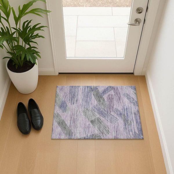 Mayfield Premium Machine Washable Abstract AMF1696 Lavender 2 ft. x 3 ft. Area Rug