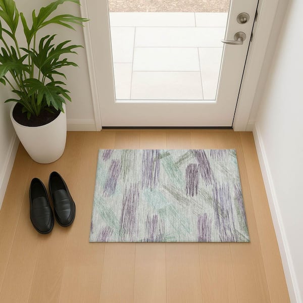 Mayfield Premium Machine Washable Abstract AMF1696 Sage 2 ft. x 3 ft. Area Rug