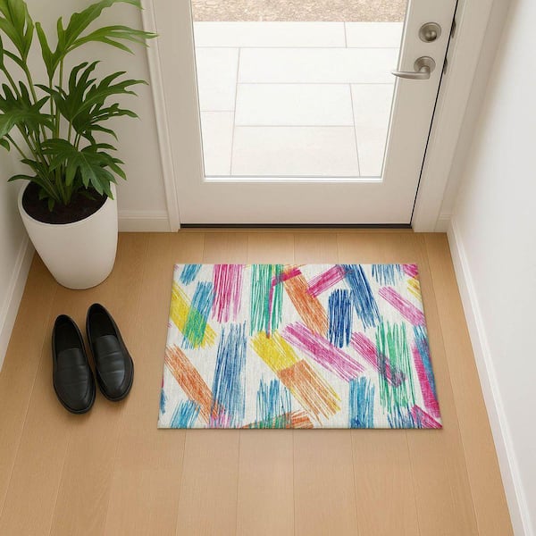 Mayfield Premium Machine Washable Abstract AMF1696 White 2 ft. x 3 ft. Area Rug