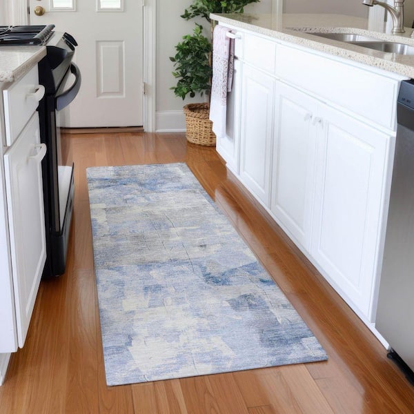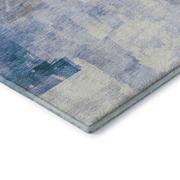 Mayfield Premium Machine Washable Abstract AMF1697 Denim 2 ft. 3 in. x 7 ft. 6 in. Runner Rug