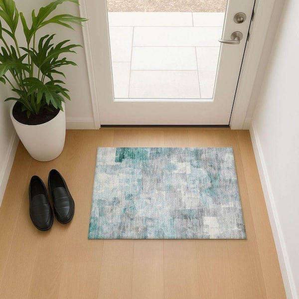 Mayfield Premium Machine Washable Abstract AMF1697 Teal 2 ft. x 3 ft. Area Rug