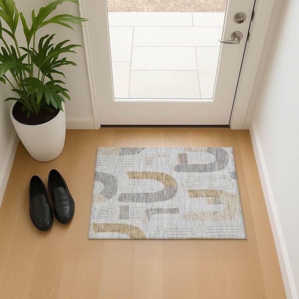 Mayfield Premium Machine Washable Abstract AMF1698 Silver 2 ft. x 3 ft. Area Rug